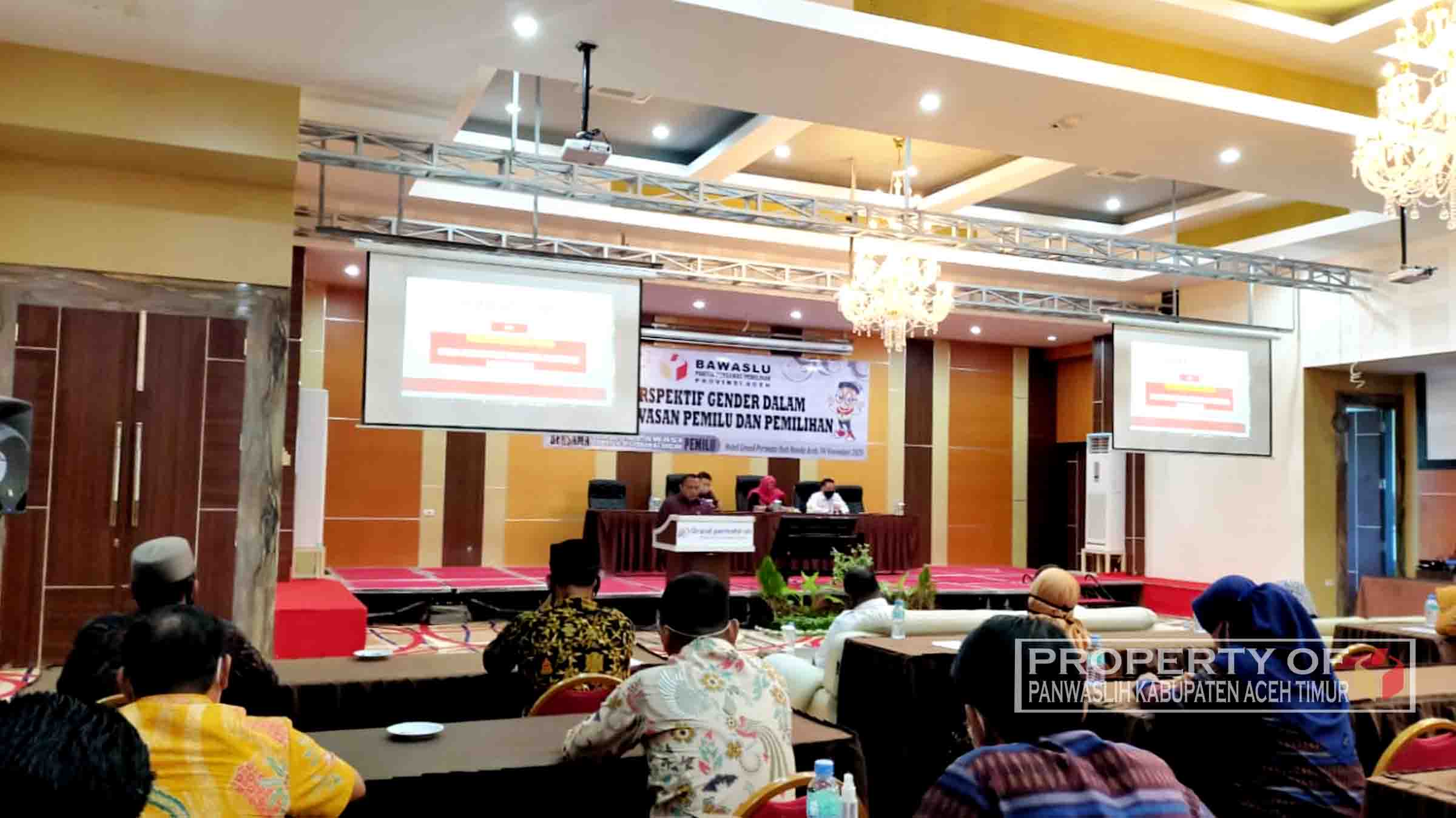 Banda Aceh - Panwaslih Kabupaten Aceh Timur menghadiri kegiatan Lokakarya Perspektif Gender dalam pengawasan Pemilu dan Pemilihan bagi Panwaslih Kabupaten/Kota yang diselenggarakan oleh Panwaslih Provinsi Aceh pada hari Rabu (04/11/2020) di Hotel Grand Permata Hati Banda Aceh yang diikuti oleh seluruh Ketua dan Anggota Panwaslih Kabupaten/Kota se Aceh.